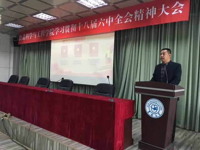 首先,党委副书记梅士伟同志宣读了学校《关于开展学习贯彻党的十八届六中全会精神》的通知,号召学院全体党员同志领会精神,深化认识,学以致用,知行合一,学习贯彻党的十八届六中全会精神,以积极的态度和优异的工作成绩迎接党的十九大胜利召开。
