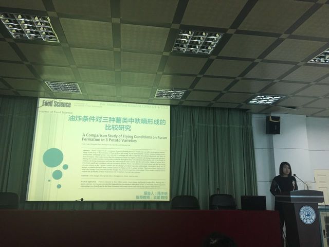 会议由学院张铁华副院长主持,聘请西区科研办主任陈玉江、学院刘静波教授、周亚军教授和孙春燕教授担任专家评委。上午,首先由两位青年教师经过精心准备对自己从事的科研课题进行介绍,张婷老师报告了食源性生物活性肽对血管紧张素转化酶的抑制作用研究,赵昌辉教师报告了SBP1的丢失会降低细胞对DNA断裂剂的敏感性和细胞硒含量方面的研究。之后,研究生杨帅伶、史册、刘鑫、刘轩廷、陈冬妍、王洪美、陈玲分别展示了自己现阶段的研究成果,同时报告人、评审人及同学们进行了三方互动交流,内容涵盖基于动态蒸汽吸附及低场核磁共振技术对蛋清肽粉的水分吸附动力学及其动态分布、尼生素协同肉桂醛抗金黄色葡萄球菌、基于三螺旋DNA分子开关检测啶虫脒、非热改性技术对红松子蛋白免疫活性及二级结构的影响、油炸条件对三种薯类中呋喃形成的比较、基于离散元和传感器阵列的牛肉品质快速检测、乳酸菌对人参皂苷的生物转化等以食品科学与食品安全为主的学科交叉研究内容。下午,学院邀请SCI发表有经验的教师作专题报告。孙春燕教授用了两个半小时系统地介绍了SCI入门、查阅文献、试验、撰写、投稿等主要内容。黄卉副教授结合自身撰写SCI论文经验,重点介绍了一个学术工作的产生流程,并强调了团队合作的重要性。四个半小时的无私分享,同学们听得聚精会神,这会让同学们少走许多弯路,提供了有益的启示,也振奋鼓舞了人心。
