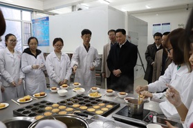 随后,校长一行考察了食品学院的部分实验室科研平台,就学院实验室硬件建设,工作环境,科研平台承担项目情况等听取学院领导汇报并进行了交流。考察过程中,李元元校长饶有兴致观看了学院建设图片,十九大宣传栏等学院文化设施指出学院的宣传工作有传统,党建工作接地气,有创新。