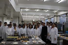 首先,校长来到食品实验楼听取了庞勇老师的2015级食品科学与工程专业食品工艺实验课》,并与师生亲切交流。校长品尝了同学们制作的蛋糕、薯条、番茄酱,教导同学们不但要从传统的工艺和配方上掌握食品的制作要领,更要在理论上学懂,学通,既要知其然,更要知其所以然只有强大的理论支撑,才能更好推动工艺的改进,配方的创新。校长广博的知识令学生佩服,语重心长的教导让学生备受感动,同学们非常激动,纷纷表示:在大学期间能够当面聆听到校长教诲并和校长进行交流,万分荣幸,收获颇多,终身难忘。最后在同学们的热烈邀请下,李元元校长高兴与同学们合影留念。