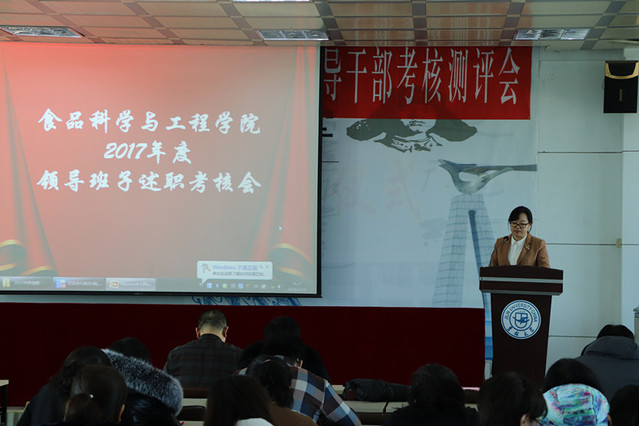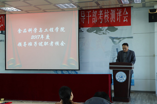 2018年3月16日下午,食品科学与工程学院在管理楼三楼报告厅召开了2017年度工作总结表彰大会暨处级领导班子和领导干部年度述职测评会。学院全体教职工和部分学生代表参加了此次会议。会议由院长张铁华同志主持。