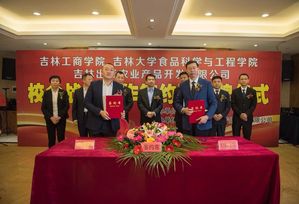 院长张铁华先后致辞,希望合作双方能够精诚合作,严格履约,齐心协力,共同促进桦甸粮油食品研发基地、科研创新实践基地等合作项目顺利开展,实现经济效益与社会效益双赢。张铁华院长和总经理郭恒吾分别代表双方单位签订协议书,并共同为教学科研创新实践基地揭牌。