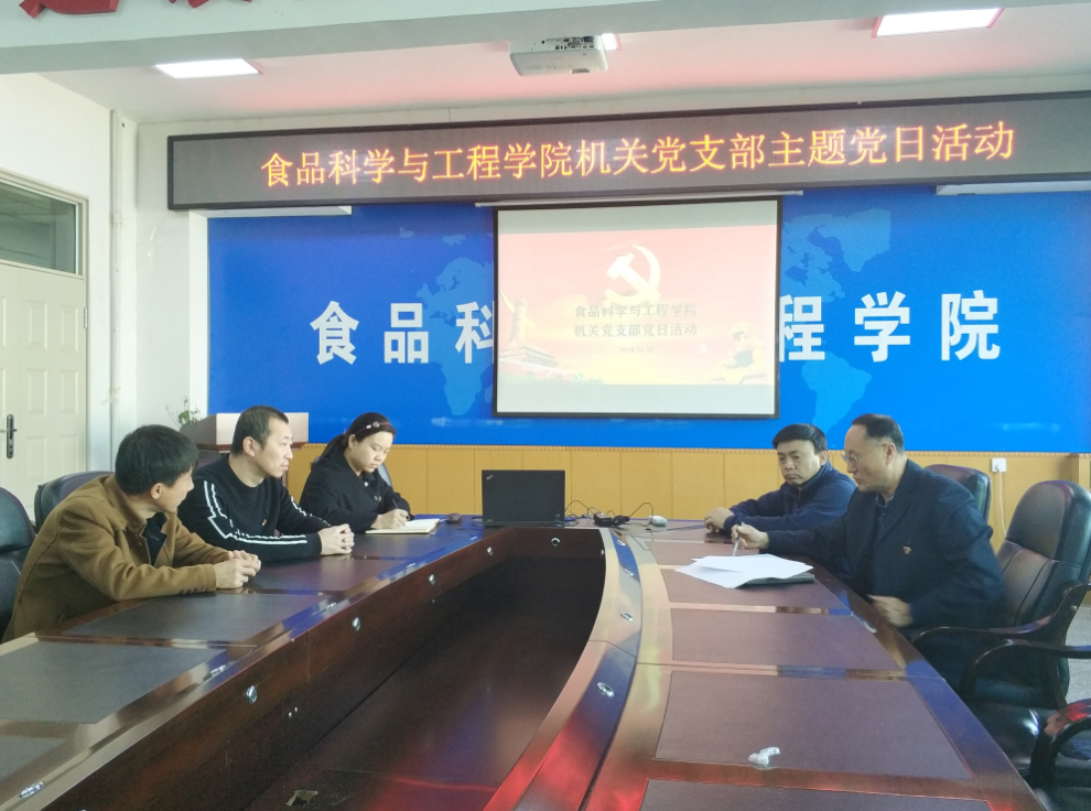 机关党支部在食品楼三楼会议室开展了主题党日活动。学院机关党支部全体党员参加了此次党日活动。党日活动由党支部书记马爽同志主持。