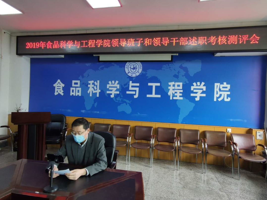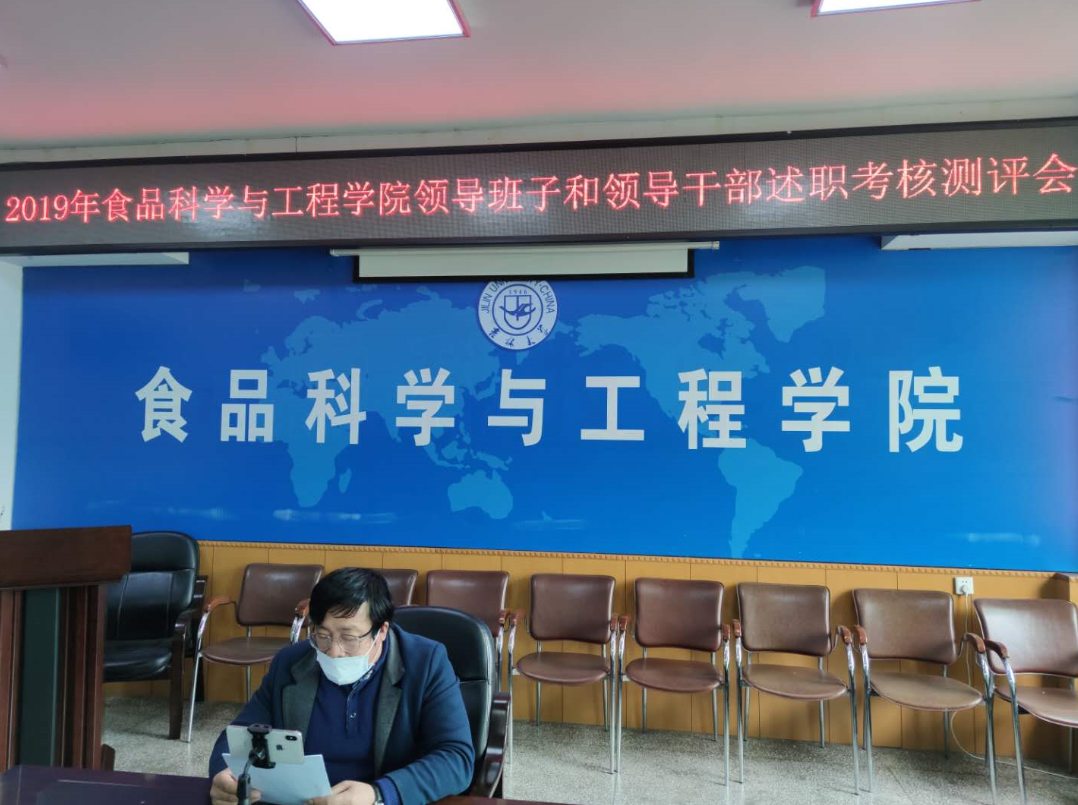 在食品楼三楼会议室召开了学院全体教职工及学生代表视频会议,进行学院领导班子和领导干部述职测评。学院领导班子成员、全体教职工及学生代表共70人参加了视频会议,会议由学院党委书记高福和同志主持。
