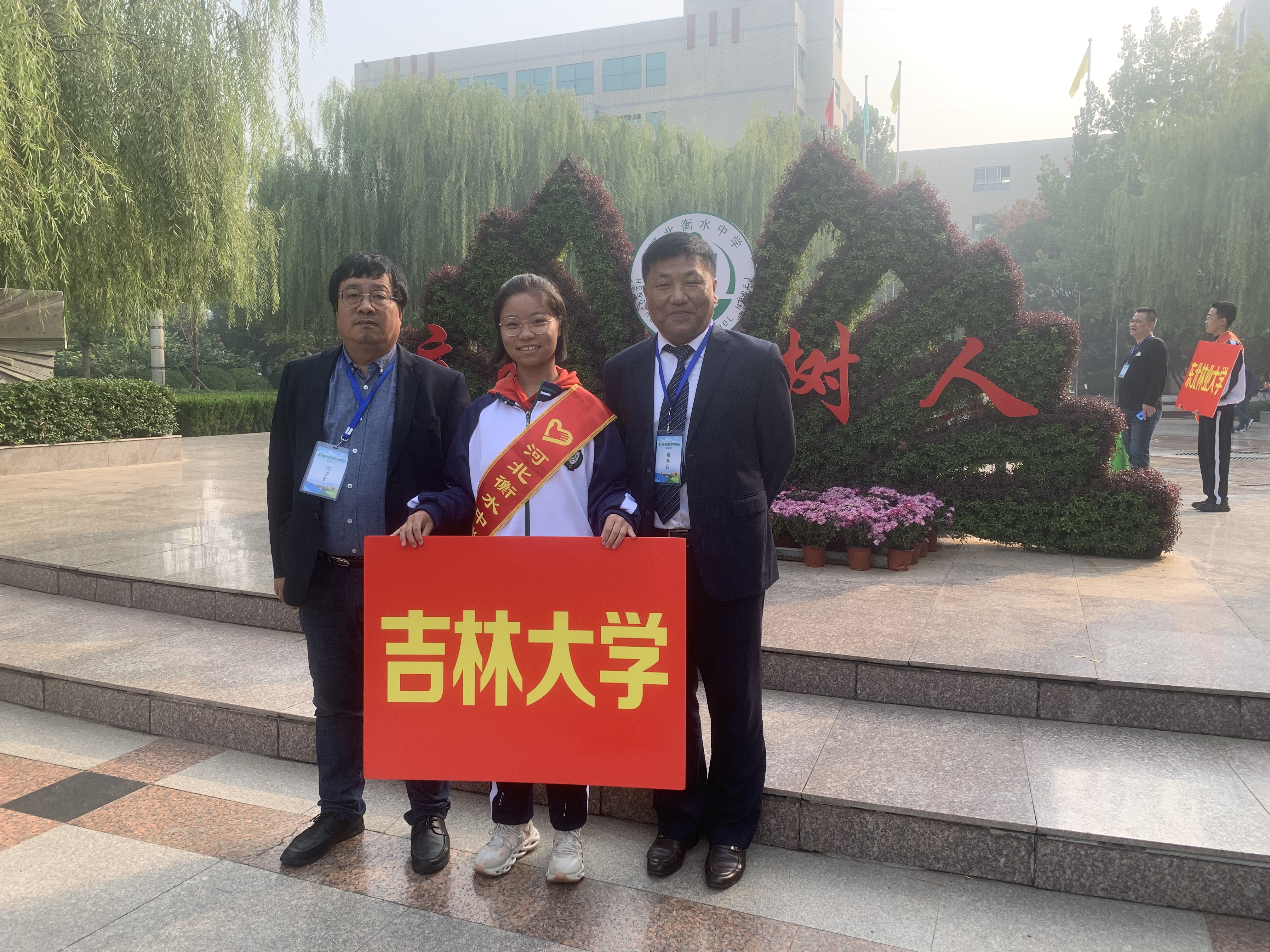 这次招生宣传所到学校,领导高度重视、考生热切期待,特别是在文茂高级中学和滦平一中。文茂高级中学因参加人数太多而将宣讲地点定在操场;滦平一中本不在我们的宣传日程安排中,得知我们在文茂高级中学宣讲,校长和副校长亲自到学校诚挚的邀请并安排我们到容纳1500多人的大礼堂作报告。任增元教授的报告在激昂的吉大校歌伴奏下精彩纷呈,掌声此起彼伏,台上台下互动热烈。最后任教授和在场的师生共同朗诵岳飞的《满江红》将气氛推到极致。