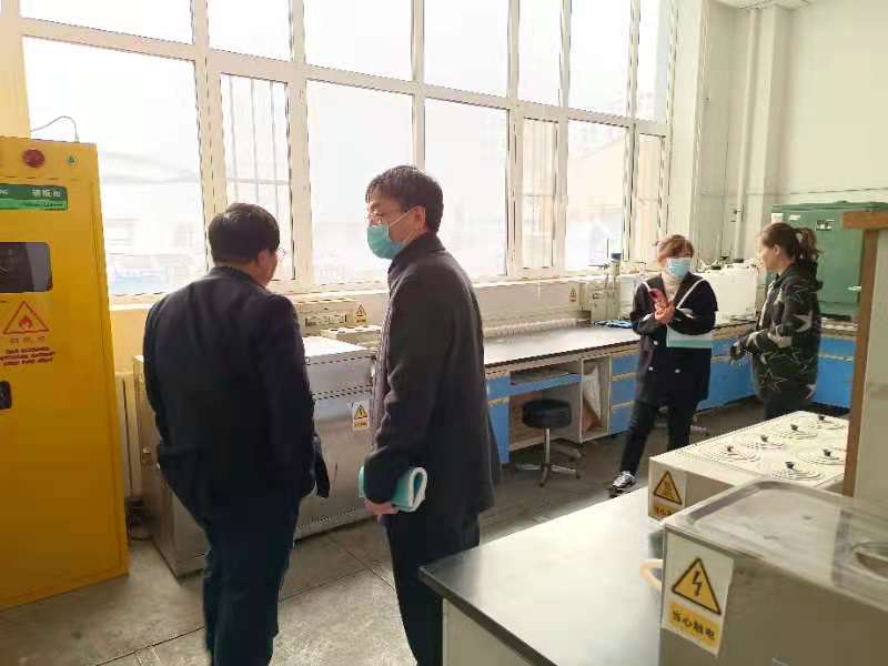 为加强“五一”期间教学科研实验室安全管理,按照“管行业必须管安全、管业务必须管安全、管生产经营必须管安全”的原则,结合学校关于做好“五一”劳动节假期校园安全工作的通知有关精神,进一步加强学院实验室的安全管理, 430日上午,学院张铁华院长,周亚军、孙春燕、陈玉江副院长,综合办公室冷国永主任,实验中心王作昭、王二雷副主任组成了联合检查组,对学院教学、科研实验室进行了全面的安全检查。