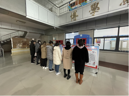 在科学讲堂举办消防日展览参观活动,全体研究生共同参与。