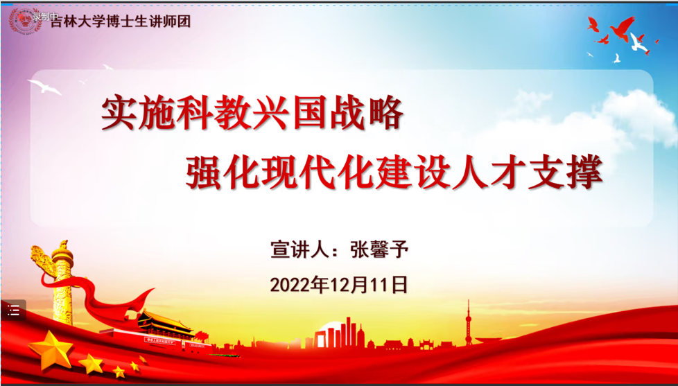 在此次宣讲中,张馨予讲师以“实施科教兴国战略,强化现代化建设人才支撑”为主题,从习近平《实施科教兴国战略,强化现代化建设人才支撑》思想、科教兴国与现代化建设人才支撑、“教育、科技、人才”三位一体建设教育强国三个方面进行了详细的论述与分享。张馨予讲师介绍,“科教兴国”战略的理论基础是邓小平同志在1977年提出的“科学技术是第一生产力的思想”,而在当下,科教兴国战略思想得到了空前的重视与发展,这充分展现了以习近平同志为核心的党中央高瞻远瞩的战略目光。此次宣讲既有理论深度,又有现实温度,张馨予讲师运用生动的事例与深邃的理论相结合,让同学们对科教兴国战略以及现代化人才建设方针有了更深的了解。
