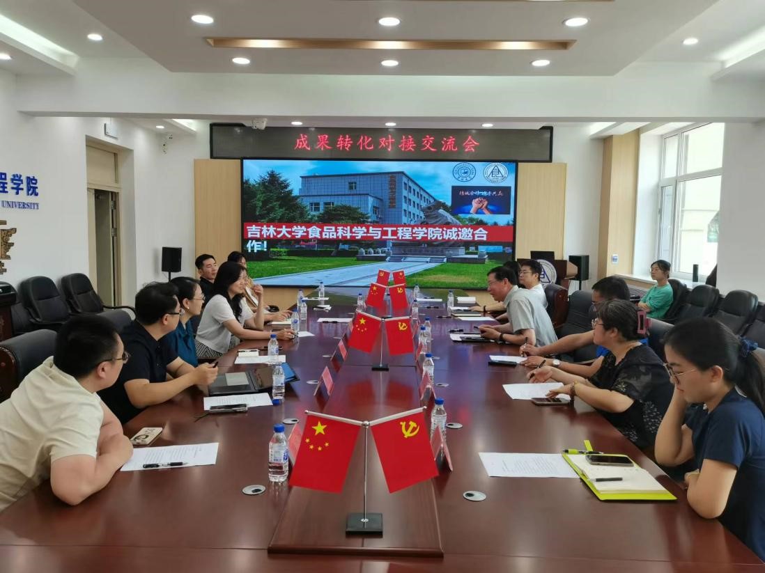 7月10日上午,吉大科研院科技开发办公室副主任王寿珍偕同吉浙合作科创服务中心秘书长曲雯婷及长春市企业富晟投资公司总监刘思克等一行人来到色情论坛 ,上门对接成果转化与交流。学院院长张铁华,副院长叶海青、孙春燕,食品安全系主任袁媛、教授董周永等人参加了交流。