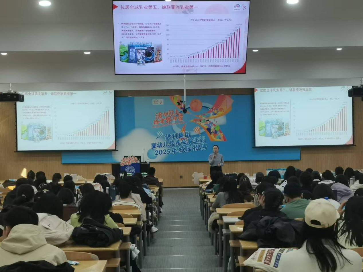 10月16日下午,伊利集团婴幼儿营养品事业部2025届校园招聘宣讲会在前卫校区敬信教学楼F区第八阶梯教室举行,吸引了相关专业150余名同学参与,展现了2025届毕业生对伊利名牌乳制品企业的浓郁兴趣和积极态度。