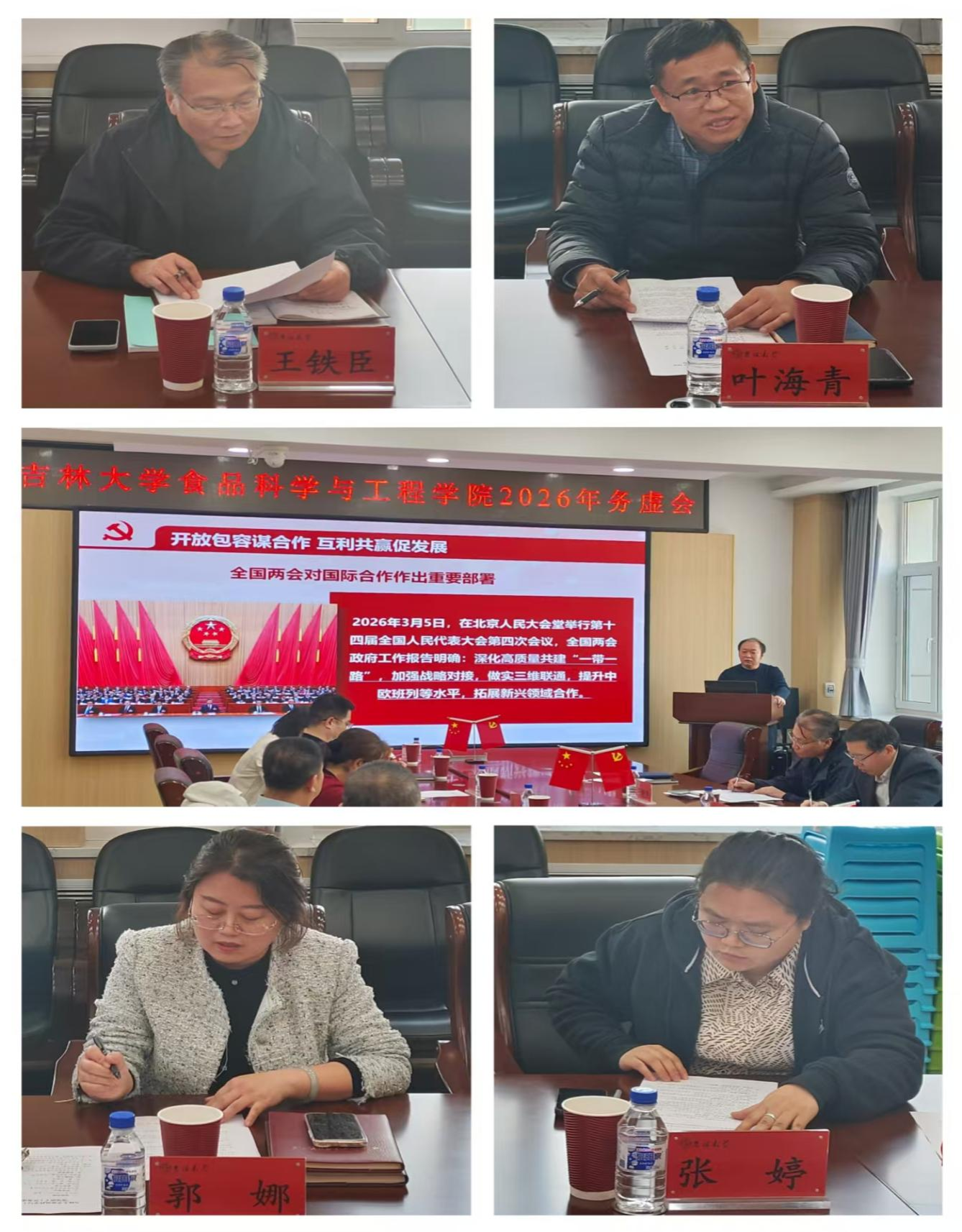 会上,副院长王铁臣以“聚焦安全稳定,保障学院高质量发展”为题,副院长叶海青以“汇聚科研力量,提升服务区域经济和产业发展水平”为题,副院长郭娜以“开展中外合作办学面临的困难、挑战与应对策略”为题,副院长张婷以“对标一流食品学科,科学完善‘十五五’规划”为题,院长助理李杨以“抢抓时代机遇,推动食品学科国际合作实质性发展”为题,分别汇报了对2026年各分管领域重点工作的谋划思考、发展目标和下一步重点工作。