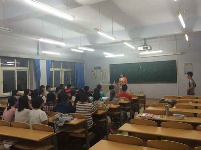 2015级六个班级分别在经信教学楼D区104、106、108、110,E区101、108教室召开新生班级见面会,学院2015级辅导员金鑫老师、各班级代班同学以及2015级全体新生参加本次班会。