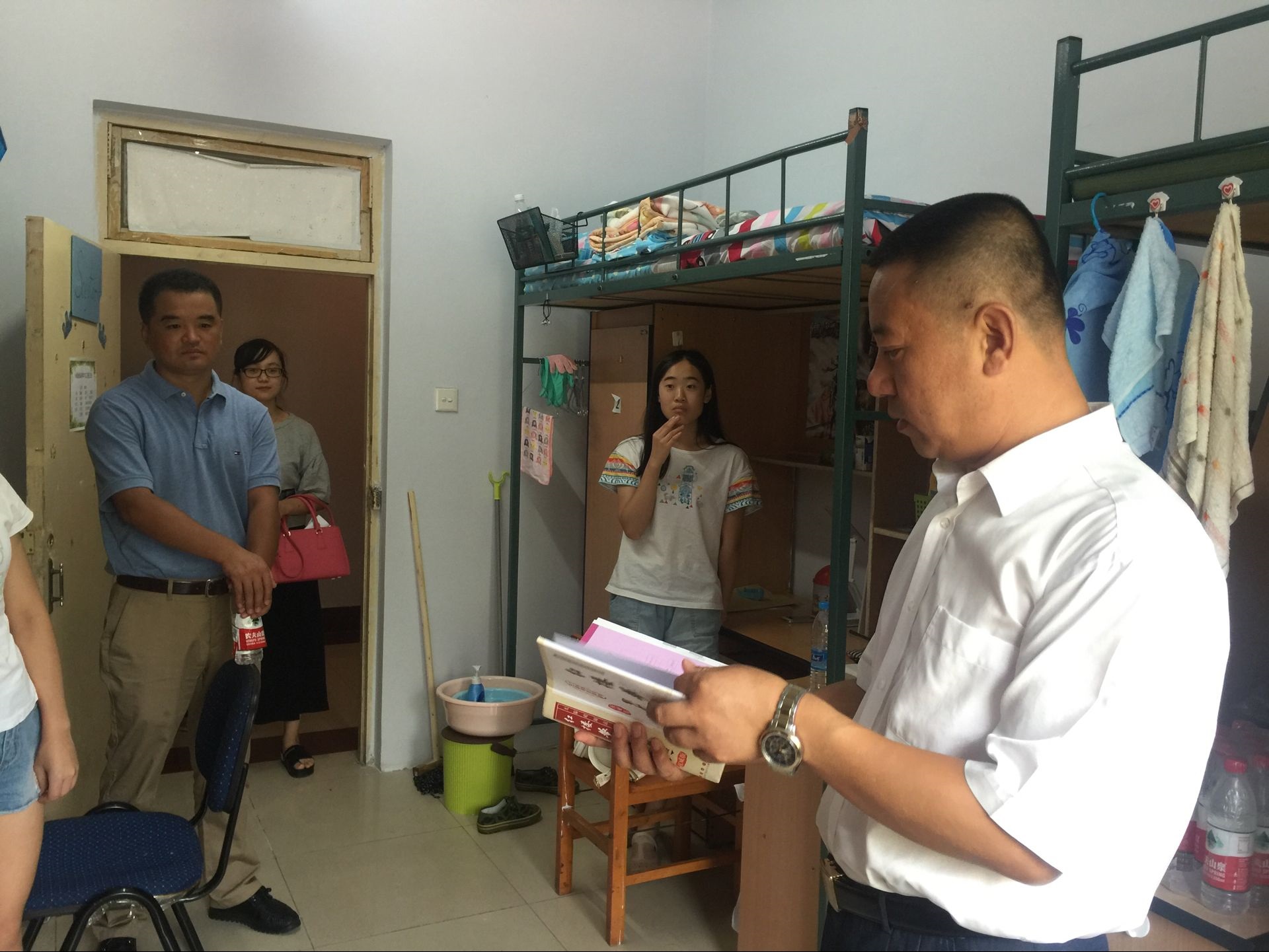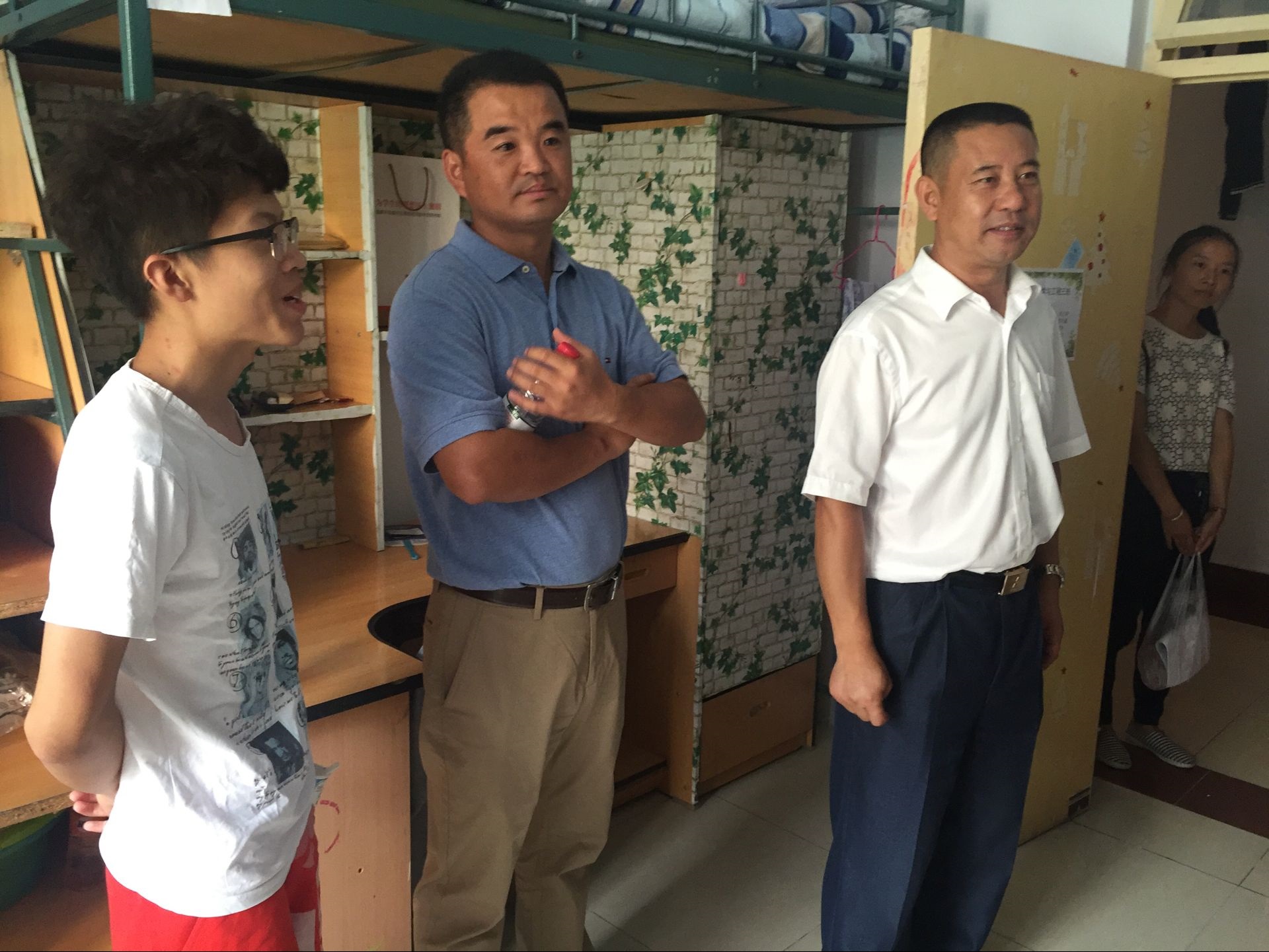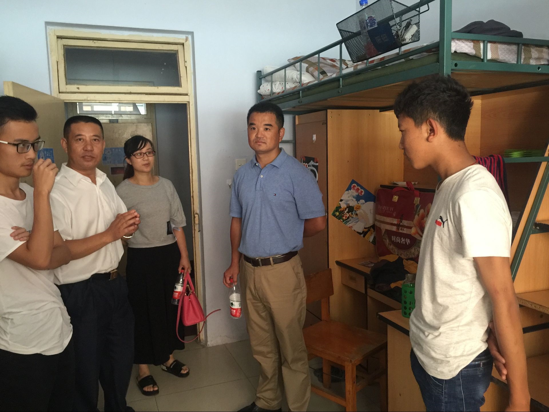 党委书记高福和、副书记梅士伟、2016级辅导员金鑫老师前往大学城二、三号新生公寓,走访了2016新生宿舍,看望新生,了解他们的生活情况。 走访过程中,高福和书记逐一进入新生寝室,详细询问了每一名学生的来源、年龄、家庭情况和高考报名志愿情况,重点了解新生的入住情况、来校饮食情况、环境适应情况等等,与尚未返乡的学生家长、2000出生的新生和四名藏族新生进行了深入交流。与新生交流期间,高书记向同学们介绍了学院的师资情况和专业前景,他提醒同学们一定要尽快适应大学生活,将全面提高自身综合素质放在首位,同时要学会包容,处理好宿舍成员和同学之间的关系,并祝愿新生在大学四年的生活中有所收获。 为帮助新生的良好成长,高福和书记还主动担任了新生六班的班主任,并表示要努力工作,为班级同学的成长成才服务。 开学之际,学院老师走访新生宿舍,是学院历年以来的迎新传统。与新生展开面对面的沟通与交流,了解新生的思想、生活状况,有利于新生更快融入食品学院的大家庭。