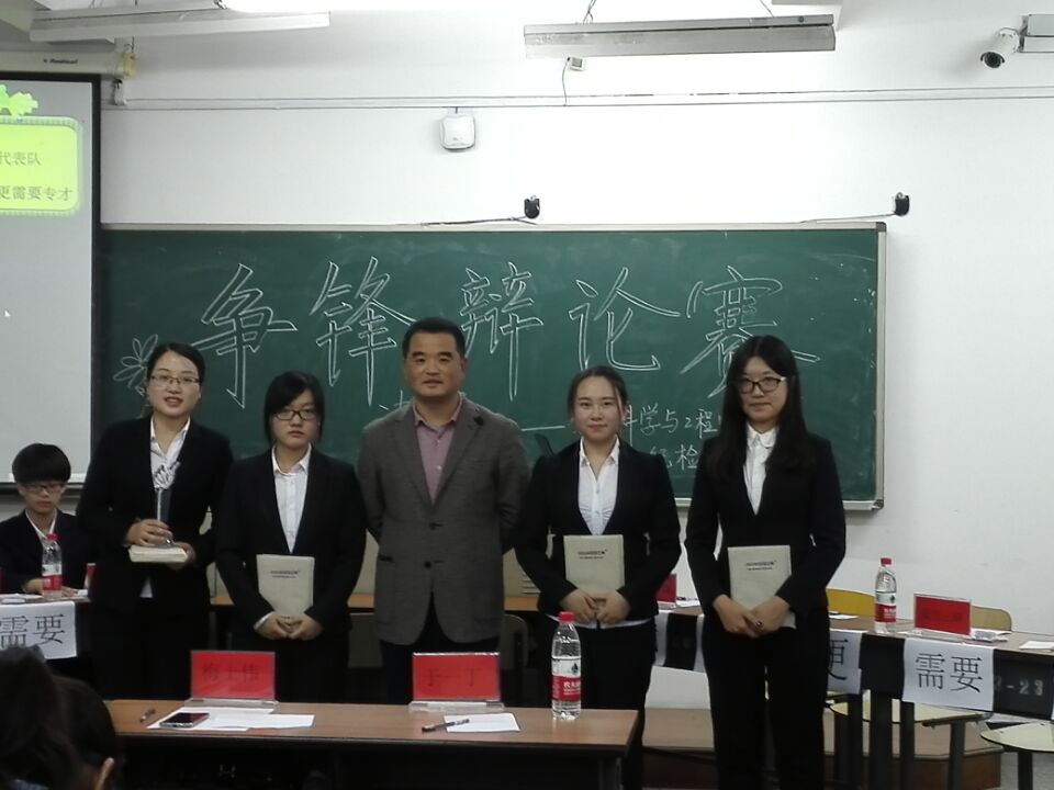 学生会举办了学院第二届“争锋”辩论赛。经过一周的激烈角逐,2015级食品质量与安全专业五班代表队与六班代表队冲出重围,进入最终的决赛环节。10月16日,“争锋”辩论赛决赛于科学讲堂301室举行,学院党委副书记梅士伟、团委书记兼学工办主任王丹、2015级兼职辅导员于一丁担任决赛评委。 决赛中,双方队伍首先进行独具风格的自我介绍,为评委及现场观众留下了深刻的印象。随后,双方就“现代社会更需要通才还是专才”展开了激烈的辩论,正方从现代社会与科技发展的综合化要求、人才培养的过于专门化带来的问题进行了阐述,而反方则从现代社会、通才与专才的概念辨析立论,唇枪舌战,不分你我。在观众提问环节中,同学们结合自己的思考,对辩手们提出了许多深刻的问题,现场气氛十分活跃。经过紧张的辩论,经评委合议,反方色情论坛