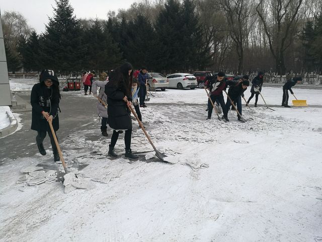 扫雪过程中,学生党员们不畏严寒、积极主动、相互配合、齐心协力,挥舞着铁锹,一点点地将积雪和冰层铲起集中堆放,尽管同学们的手和脸被冻的通红,然而这一切丝毫没有影响大家的热情和工作效率,手中的扫雪工具不停地挥舞。在学院学生第二党支部副书记李松函的带领下,同学们发扬了吃苦耐劳、顽强拼搏的精神,大家团结协作,顶着寒风,将食品楼前的积雪全部清扫干净。同学们干劲十足的身影感染了每一个路过的人。经过了近一个小时的奋战,路面基本恢复了畅通洁净。