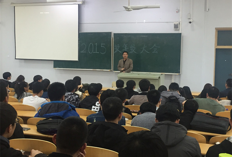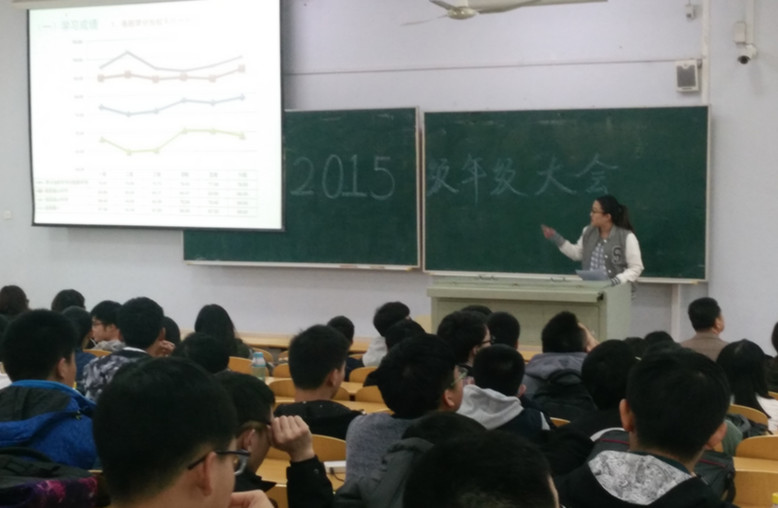 于科讲100教室组织召开了2015级本科生年级总结大会。学院党委书记高福和、党委副书记梅士伟、2015级博士生兼职辅导员于一丁等出席了本次会议。 会议开始,辅导员于一丁老师首先从学习成绩、挂科统计、英语四级统计、问题分析等四个方面对2015级学生上一学期学业情况进行了全面的分析,再运用图表详细明了地对2015级各班综合学习情况进行了梳理。接着,于老师详细分析了同学们在态度、时间分配、心理影响、班风寝风等方面的问题。结合学生的学业情况及存在问题,于老师提出了新学期的工作计划:(一)提高学习劲头,保证课堂到课率;(二)提高四级通过率,保证六级通过率;(三)建立班委责任制,端正学习态度;(四)与个别同学家长保持沟通;(五)监督完成周计划、周总结等。 接着,梅士伟副书记通过数据展示了2015级学生入学以来的学业成绩,督促同学们认真学习以提升成绩,接下来他运用PPT向大家介绍了我院2013级学生的就业、国考和深造情况,带领大家共同分享了学院优秀学子的成绩,分析了不同就业方向的适用性、条件要求和竞争压力,帮助大家明确自己对未来的规划。最后,他希望同学们克服无所事事、自暴自弃、各自为战的危险,适应环境,树立信心,塑造集体,做最好的自己。 会议最后,高福和书记作总结发言。他鼓励学习成绩不好的同学不要气馁,只要勤奋努力,一定能取得一个好成绩,同时指出同学们可以探索“结对子”等有效方式,通过互帮互助,从而提高成绩,建设好的寝风、班风,从而形成良好的学风。他最后希望同学们好好利用学校和学院良好的资源,走研究性道路,不断努力从而成为行业领域的精英。 通过本次大会2015级本科生更加明白学习的意义与责任,对自己的未来也有了更加明确的规划。本次大会对学生们今后的学习与发展具有明显的指导意义。