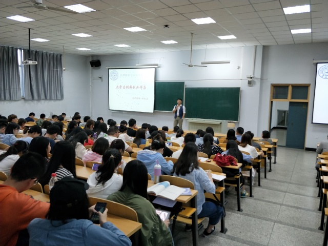 讲座过程中,杨红岩老师首先向同学们介绍了自己的人生经历,他从小跟随自己的父亲在菜市场卖肉,三年级就独自销售自家部分商品,上中学时为了不给家庭带来经济困难,他勤学苦读,以优异的成绩获取了免学费的资格,从此便不让家人给予生活及学习费用。在山东大学读书期间,身兼多份职业,大学的锻炼给予他巨大的财富。他毕业两年,创业三年,就创建了山东龙岸企业咨询有限公司,业务范围包括培训、企业管理、咨询策划、品牌运营。他以自己的亲身经历提醒与会同学们在大学一定要做好三件事:一是充分利用课余时间踏入社会进行社会实践,从实践中成长;二是要心怀梦想,社会不会抛弃有梦想的人,有梦想才能有美好的未来;三是要有健康的身体,鼓励同学们找到自己喜欢的体育项目,在运动中磨练自己的意志,提高抗挫折能力。最后他用四句话送给同学们共勉:人生因梦想而伟大,人生因学习而改变,人生因行动而成功,人生因感恩而有贵人相助。在提问环节中,在场的同学们踊跃地提问,现场气氛热烈。
