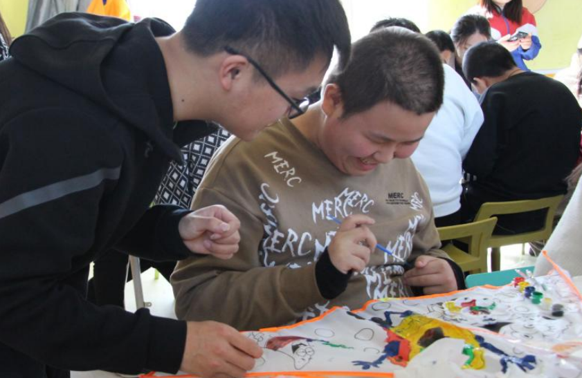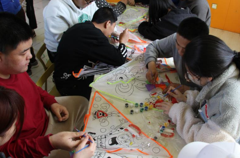 活动准备阶段,志愿服务部成员进行多次探讨,确定活动具体事宜,分组分工为活动进行预热,采购了若干个风筝,并招募了11名志愿者。来到特殊儿童训练中心后,为了激发孩子们的兴趣,锻炼孩子们的动手能力,志愿者先与孩子们一起开始画风筝。