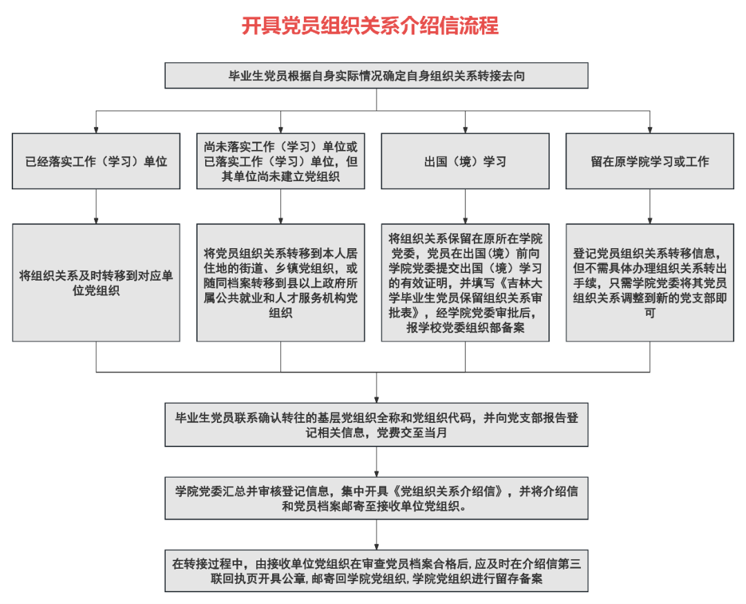 3. 学院党委汇总并审核登记信息,集中开具《党组织关系介绍信》,并将介绍信和党员档案邮寄至接收单位党组织。