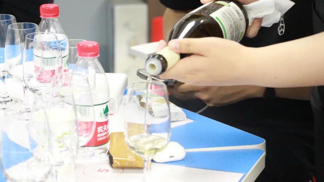 随后,公开课“甘甜满夏日,美丽京津冀”线上直播正式开始。工作人员为每位参与的同学倒酒进行品鉴。本次进行品尝的葡萄酒分别来自六个不同酒庄,贵州茅台酒厂昌黎葡萄酒业有限公司总经理范雪梅老师为为同学们详细介绍每一款葡萄酒的产地、品种、酿造工艺和口感特点,认真讲解了如何规范地闻、尝、品葡萄酒,让大家在品尝的过程中更好地了解葡萄酒的酿造文化和发展历史。