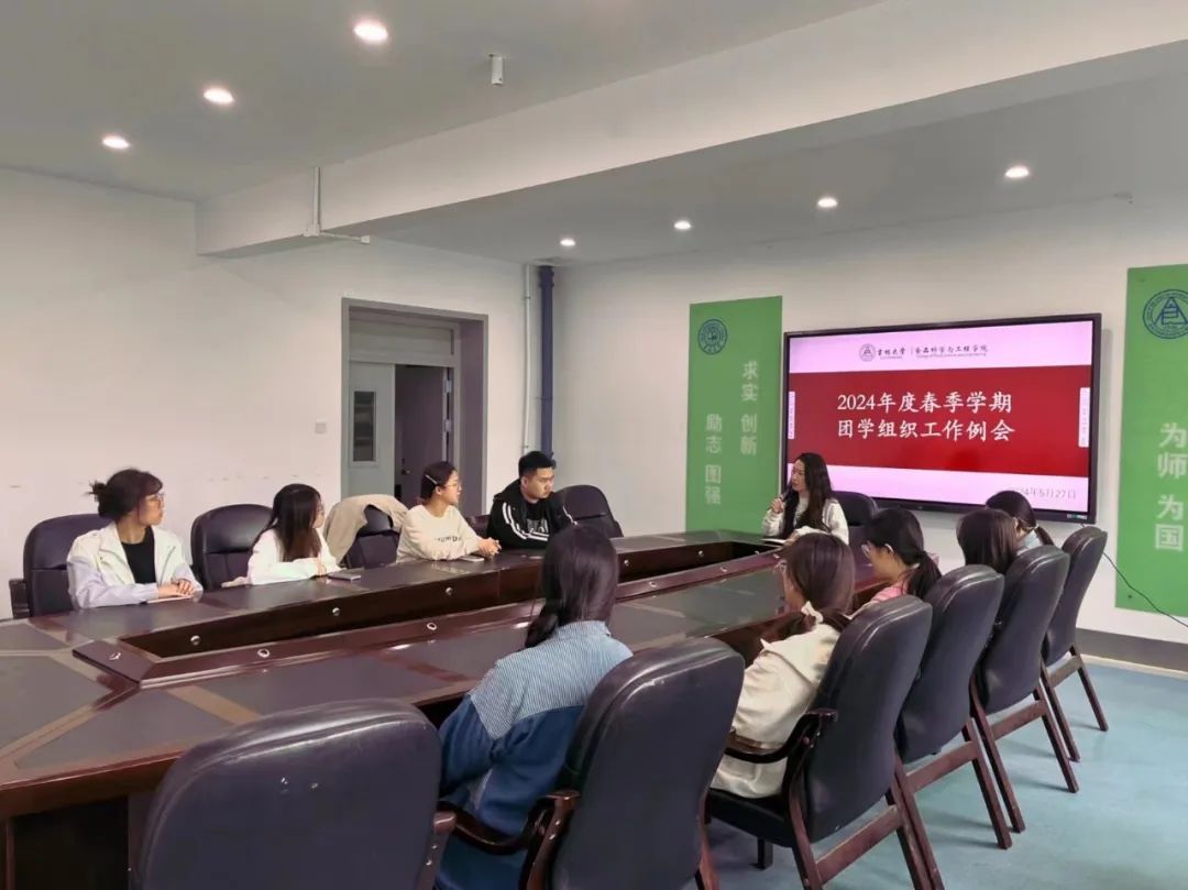于2024年5月27日召开团学组织工作例会,由团委书记王新欣老师带领团学组织所有骨干成员对运动会期间的相关工作进行总结反思,并部署下一阶段的工作安排。