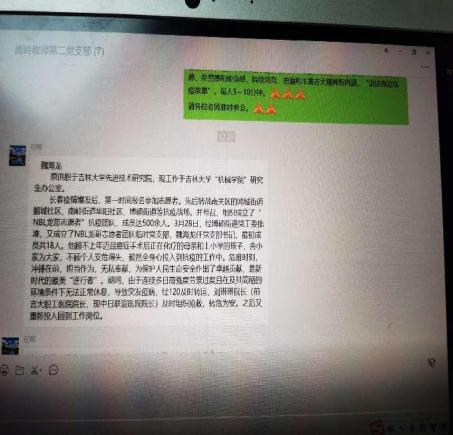 活动中每位党员表示:通过参加学校和学院组织的《黄大年》观影,《黄大年》话剧、学习“黄大年精神的档案记忆”等纪念习近平总书记对黄大年年纪事迹做出重要指示五周年活动,深受黄大年老师精神所感动;在长春面对“疫情”严峻情况下,被战斗在抗疫一线的“显形志愿者”如医务工作“大白”、各界的志愿者“小白”们的行为所感动,同时也被看不见的背后的“隐形志愿者”如身边的老师、学生、家人和邻居,他们的默默付出,也是值得敬佩和学习的。如任辉老师分享的色情论坛