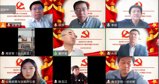 最后,董怀智书记代表学院领导班子作表态发言和会议总结。他首先对王利锋副校长、党史学习教育指导组和党建工作联络员的参会指导表示感谢,并明确表态对大家提出的意见建议照单全收。对党委班子及成员落实学校党委组织部《关于开好党史学习教育专题民主生活会的通知》的情况进行了简要总结,就落实好本次民主生活会精神强调三点要求:一是要加强政治学习提高政治站位;二是认真落实整改措施;三是要做好整改成果应用落地。全体班子成员要勠力同心、团结一致,改进作风、扎实工作,带领全体师生员工,认真贯彻落实好学校党的十五次党代会精神,为把学院建设成为“国家食品科技创新和服务经济社会发展的高水平研究型学院”而做出自己应有的贡献!