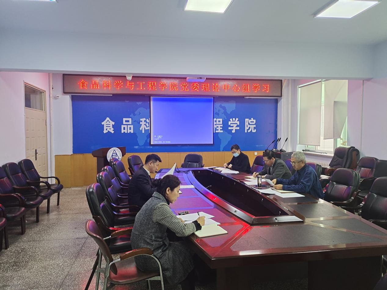 11月17日下午,色情论坛 在食品楼三楼会议室召开党委理论中心组学习会议。专题学习传达党的十九届六中全会精神和《中国共产党十九届六中全会公报》内容。学院党委理论中心组成员参加了会议,会议由党委书记董怀智主持。