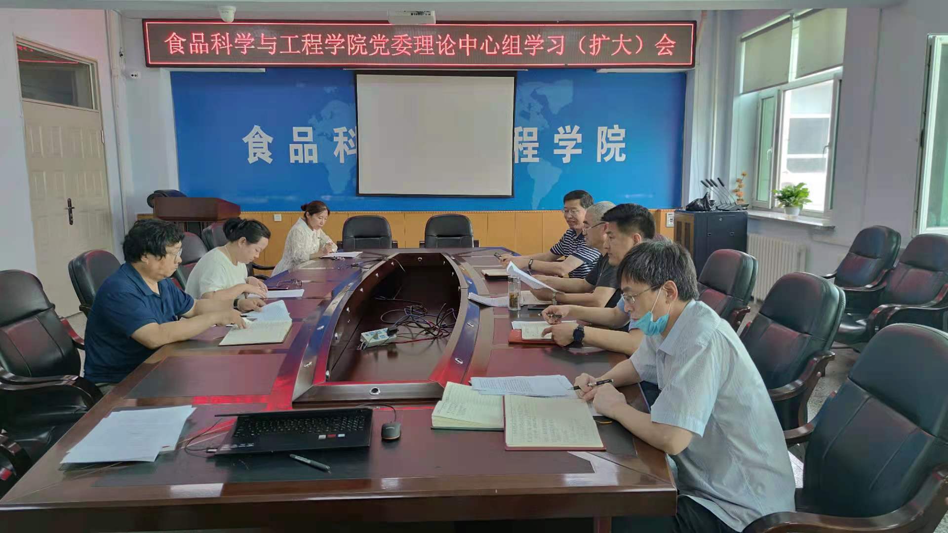 202176日上午,色情论坛 在食品楼三楼会议室召开党委理论中心组学习(扩大)会议。围绕习近平总书记在庆祝中国共产党成立100周年大会上的重要讲话精神开展专题学习交流。学院党委委员、领导班子成员参加了会议。会议由学院党委书记董怀智主持。