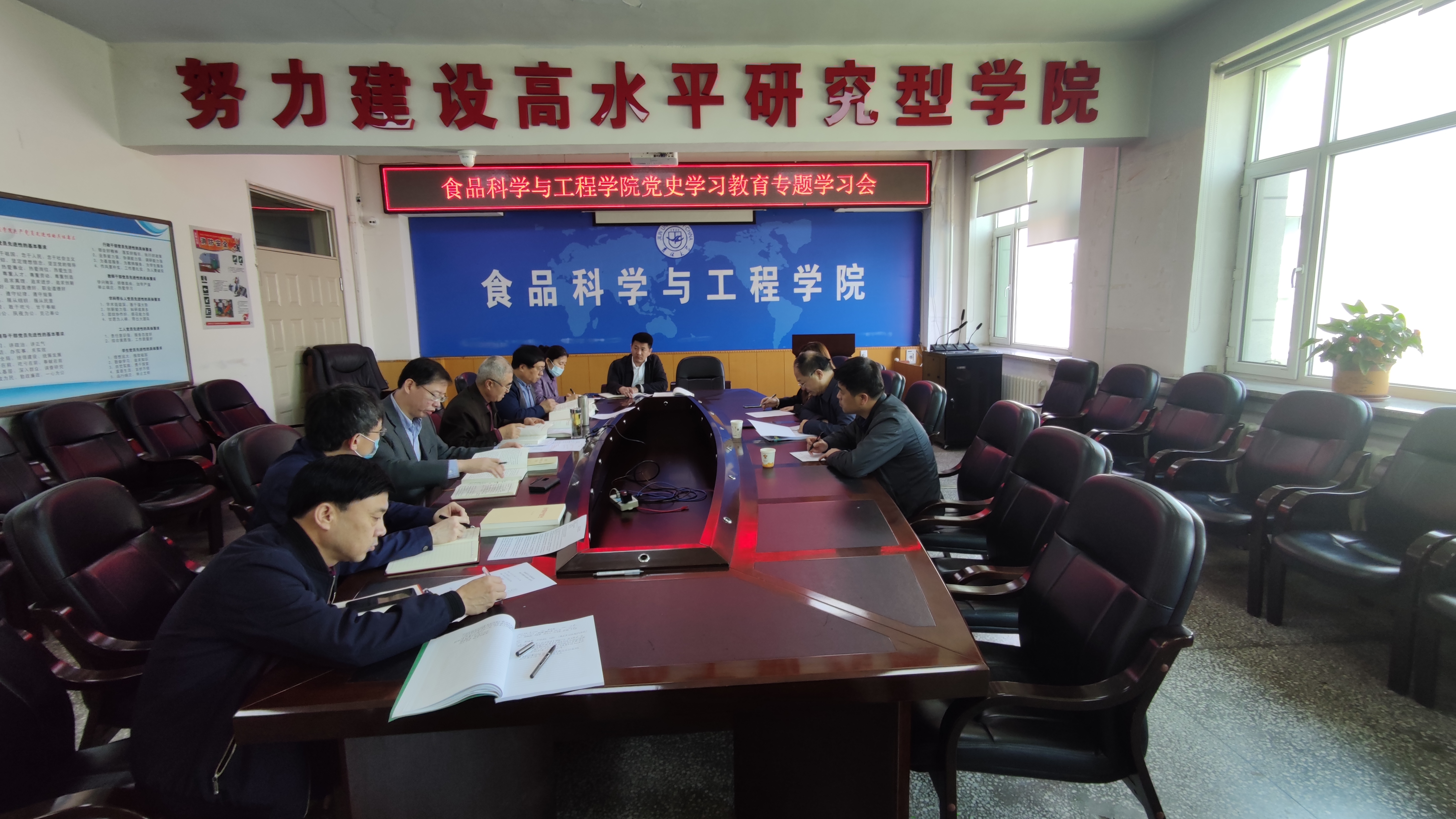 在食品楼三楼会议室召开党史学习教育专题学习会议。学院党委理论学习中心组全体成员参加了会议。学校党史学习教育第五指导组组长高继成、副组长孙长轮和联络员王畅同志出席会议。会议由学院党委书记董怀智主持。