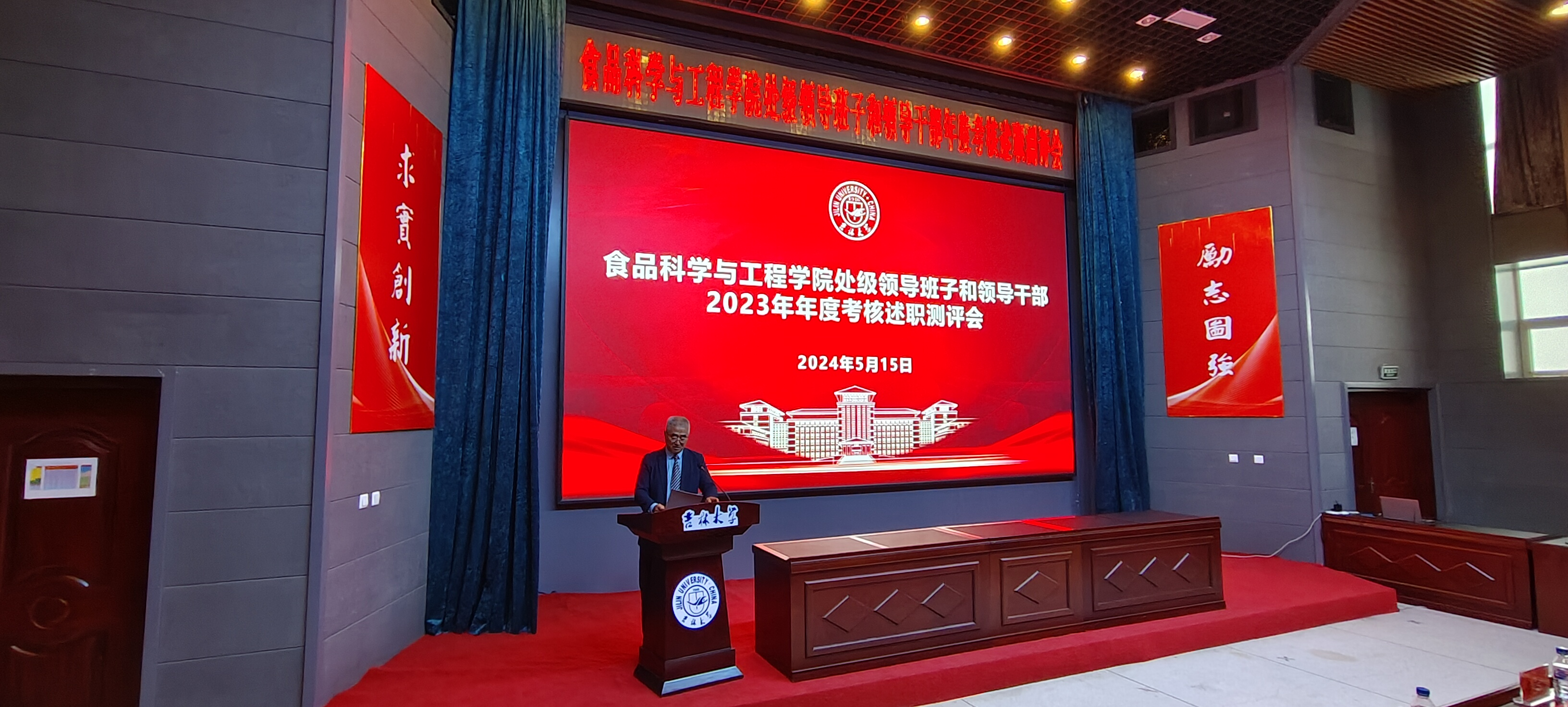 会议开始,由院长张铁华代表学院领导班子作总结报告,围绕政治思想建设、领导能力建设、工作实绩、党风廉政建设、作风建设等方面总结了主要业绩和成效,并指出工作中存在的问题及下一步工作努力方向。学院党委将全面贯彻落实党中央和上级党委各项决策部署,坚持以习近平新时代中国特色社会主义思想为指导,认真学习贯彻党的二十大精神和学校第十五次党代会精神,不断加强党对学院工作的全面领导,始终坚持为党育人、为国育才的初心使命,落实立德树人根本任务,不断推进学院的高质量发展,为学校的“双一流”建设贡献食品力量。